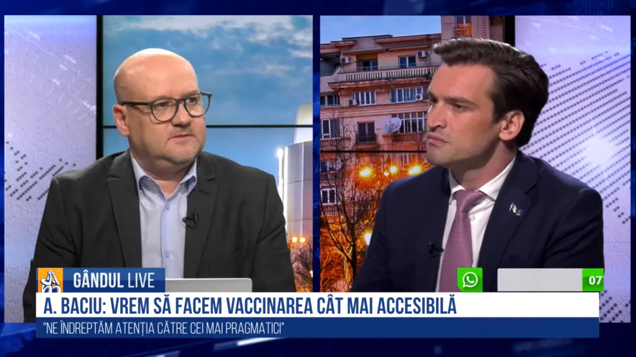 Andrei Baciu, secretar de stat în Ministerul Sănătății, a vorbit, în cadrul emisiunii GÂNDUL LIVE, despre campania de vaccinare, certificatul verde digital, dar și despre următoarea etapă de relaxare.
