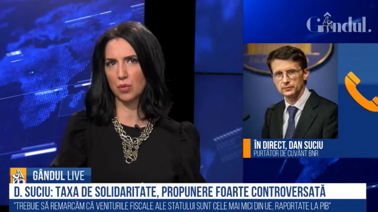 „Nu cred că acum trebuie să gândim nepărat în termeni ideologici, pentru că noul coronavirus nu știu dacă e de stânga sau de dreapta, e o problemă serioasă pentru economie și pentru sănătate, în primul rând. Ce pot spune, dincolo de referirea directă la sistemul de taxare, având în vedere că vorbesc în numele Băncii Naționale și sunt limitat în a-mi exprima păreri personale, am, da nu cred că e cazul: Până să avem o analiză mai exactă a taxei, trebuie să remarcăm un lucru, faptul că, până la urmă, veniturile fiscale ale statului român sunt cele mai mici din Uniunea Europeană, raportate la PIB. Asta e o realitate cu care ne confruntăm, ne-am confruntat cu ea și înainte de criza aceasta, ne vom confrunta cu ea, se pare, și în timpul crizei, și tare mă tem că ne vom confrunta cu ea și după criză”, a explicat Dan Suciu, la Gândul Live.
