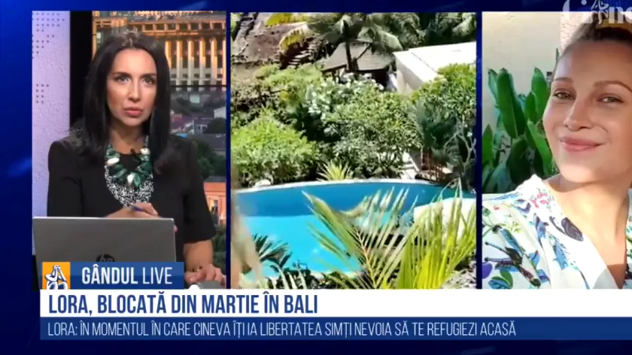 Răpusă emoțional de moartea mamei sale, Lora și-a dorit o vacanță care să o ajute să treacă peste acea perioadă. În momentul intrării României în stare de urgență, Lora și iubitul ei Ionuț Ghenu au decis să-și prelungească vacanța până pe 7 aprilie. Apoi, lucrurile au devenit complicate și în Bali, iar zborul către casă s-a anulat. Până acum, Lora a avut de-a face cu 8 zboruri anulate și speră că va reuși să se întoarcă acasă la finalul lunii iulie.