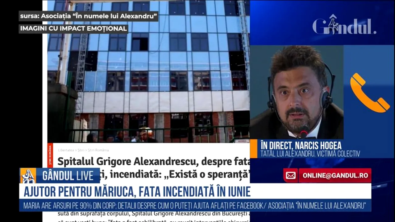 Narcis Hogea, tatăl tânărului Alexandru, răpus de incendiul de la Clubul Colectiv din 2015, a găsit puterea să ajute alți copii aflați în suferință. Acesta a făcut un apel, prin intermediul GÂNDUL LIVE, pentru susținerea Mariei, fata incendiată de un criminal în serie, lăsat în libertate de statul român.