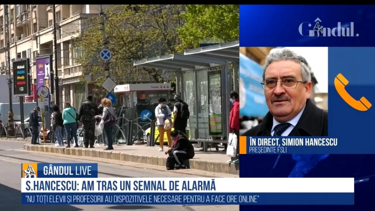 Prima pagină » Gândul Live! » GÂNDUL LIVE. Simion Hăncescu, președinte FSLI : „Reprezintă un pericol ca elevii de clasa a VIII-a și a XII-a să fie aduși la ore în perioada 2-12 iunie”