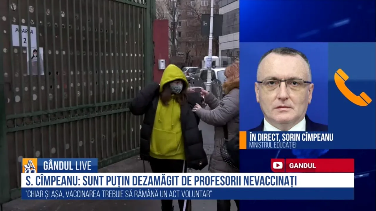 Prima pagină » Gândul Live! » GÂNDUL LIVE. Sorin Cîmpeanu: „Sunt puțin dezamăgit de numărul de profesori vaccinați” | VIDEO
