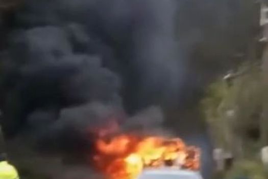 Un fum negru și dens s-a ridicat deasupra mașinii imediat după ce a fost cuprinsă de flăcări, care putea fi văzut de la sute de metri depărtare.