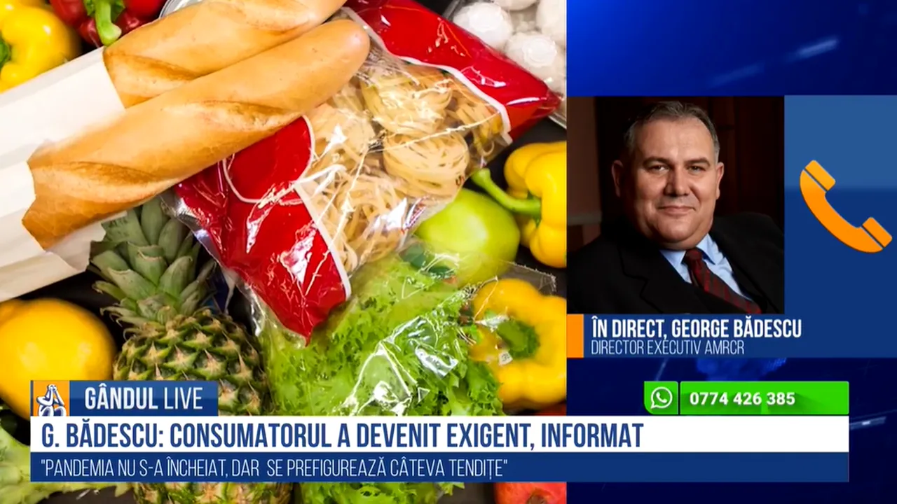 George Bădescu, director executiv AMRCR, a vorbit la Gândul Live, despre profilul consumatorului în pandemie, preferințele acestuia, impactul crizei de sănătate asupra programului de lucru al angajaților, dar și despre prezența produselor românești pe rafturi.