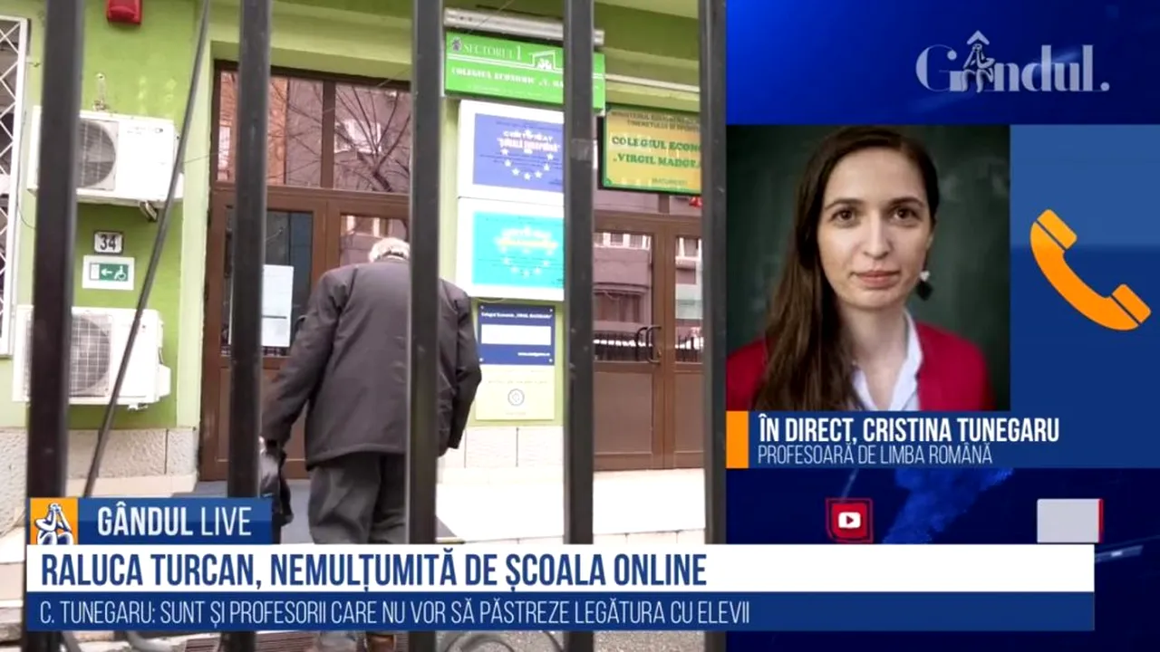 Cristina Tunegaru, profesoară de Limba și literatura română, vorbește în ediția de vineri, 20 noiembrie, a emisiunii GÂNDUL LIVE, despre ce înseamnă școala online pentru mulți elevi din România, dar și despre unii profesori care preferă predarea asincron, în care contactul profesor-elev nu are loc, ceea ce reprezintă un deficit major pentru educația românească.