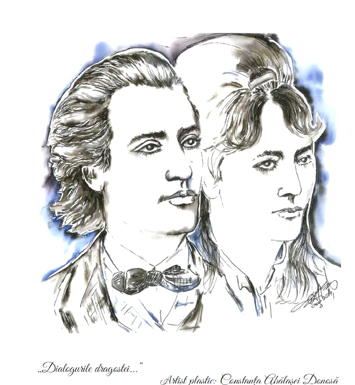 După o pagină enumerativă a tuturor contributorilor la realizarea acestui op deosebit, conceput și coordonat de doamna Lili Bobu, ne întâmpină în pragul cărții chipul nobil și luminos al celebrului compozitor Eugen Doga, realizat de Romulus Harda, ce prefigurează un text introductiv consistent semnat de ilustrul compozitor, în care acesta își mărturisește sincer avatarurile accederii către scrierile celor doi poeți îndrăgostiți și, nu în ultimul rând, surpriza pe care i-au produs-o versurile semnate de Veronica Micle, care „par să fie scrise special pentru muzică”.