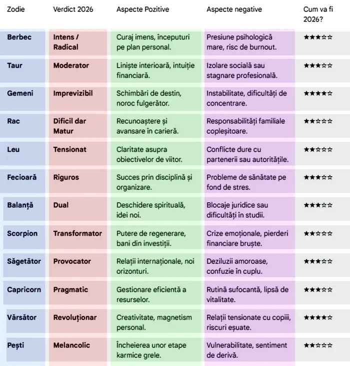 Cum va arăta anul 2026 pentru fiecare zodie în parte