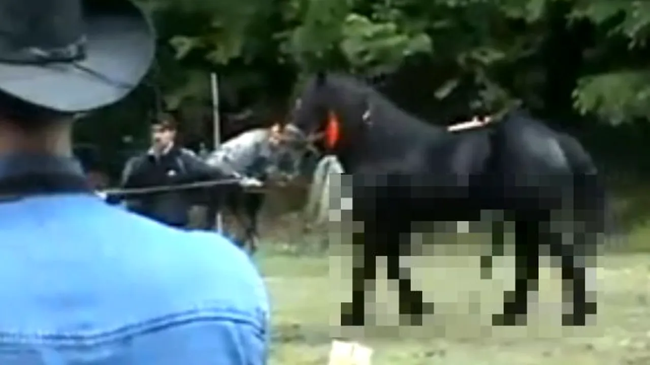 Portalul hell.tv publică un filmuleț amuzant, de la o paradă de cai din România. În imagini apare un armăsar negru, cu organul genital la vedere.