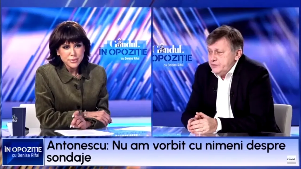Crin Antonescu, fost președinte al PNL și propunerea coaliției PSD-PNL-UDMR pentru alegerile prezidențiale, invitat în emisiunea „În Opoziție cu Denise Rifai”, a explicat poziția sa privind sondajele și procesul decizional al partidelor. Acesta a subliniat că analiza și validarea candidaturii trebuie să se desfășoare rapid, pentru a evita incertitudinea. Urmăriți aici, integral, emisiunea „În opoziție cu Denise Rifai”.