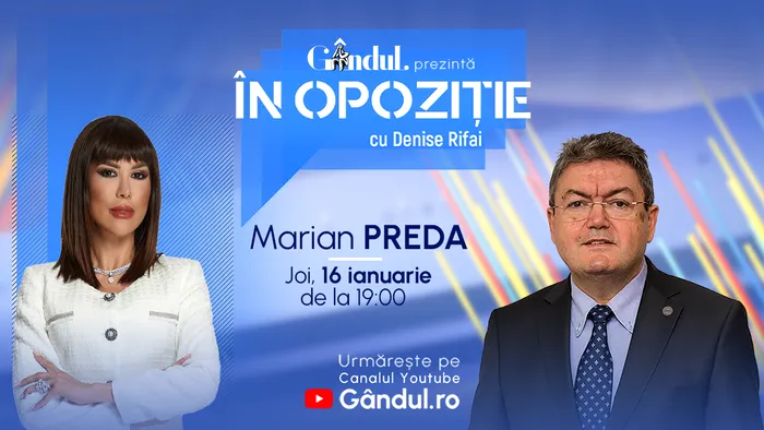 Emisiunea „În Opoziție cu Denise Rifai” începe joi, 16 ianuarie, de la ora 18.00, live pe Gândul. Invitați: Igor Bergler și Marian Preda.