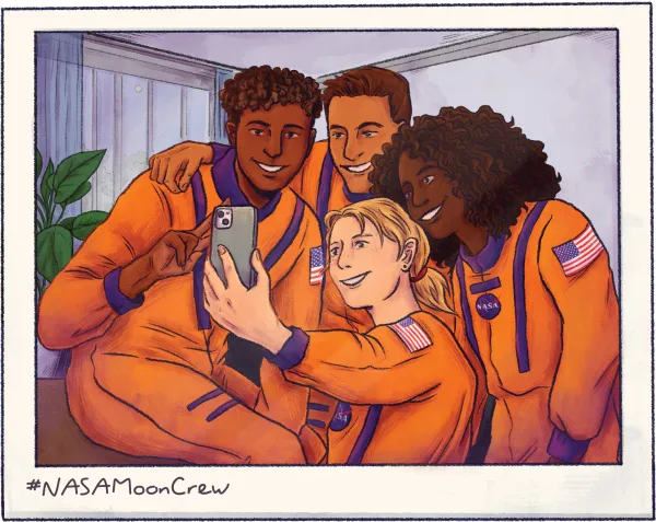 Misunea este o premieră: este primul zbor lunar la care vor participa o femeie, un afro-american și un astronaut non-american.