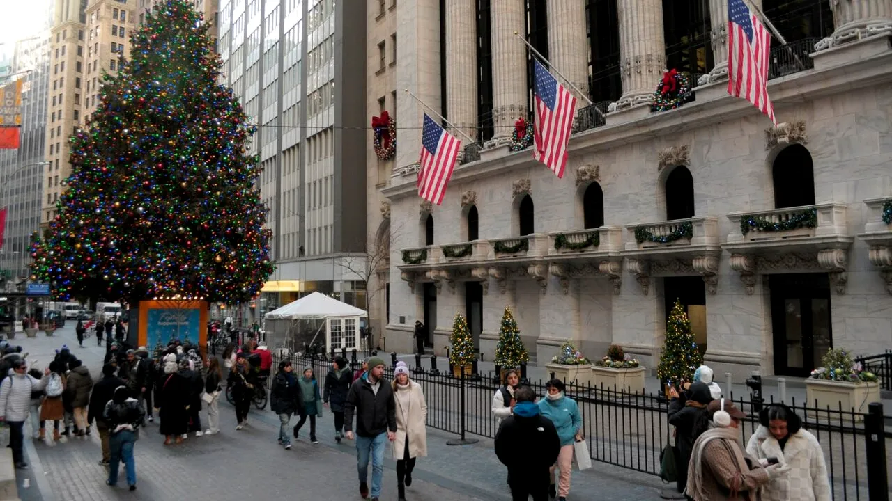 Un brad de Crăciun de lângă Bursa de Valori din New York