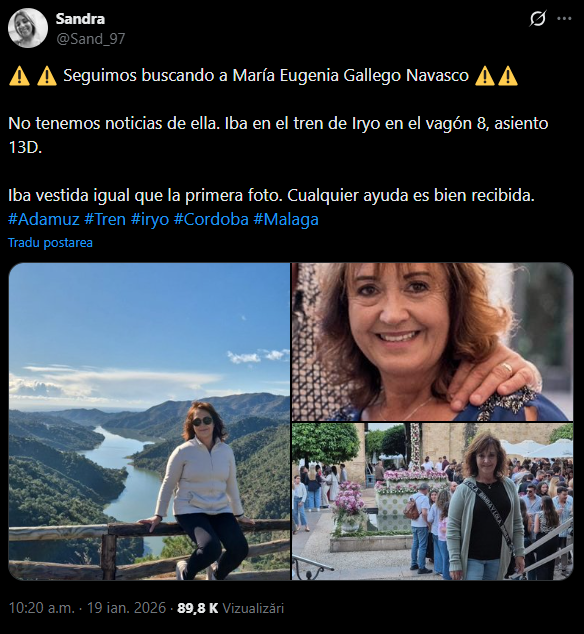 Ministerul Afacerilor Externe (MAE), prin intermediul Consulatului General al României la Sevilla, s-a autosesizat în urma producerii unui accident feroviar în regiunea Cordoba și a întreprins demersuri în regim de urgență pe lângă autoritățile locale în vederea obținerii unor informații oficiale cu privire la existența unor cetățeni români printre persoanele afectate.