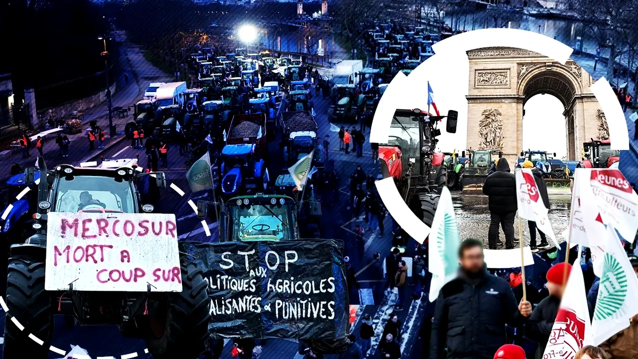 Fermierii francezi protestează din nou marți la Paris, cu peste 350 de tractoare adunate în zona Pieței Concorde și pe marile artere ale capitalei. Acțiunea a fost organizată de principalele sindicate agricole, care cer guvernului măsuri rapide și clare pentru protejarea agriculturii naționale, în contextul acordului comercial dintre Uniunea Europeană și țările Mercosur.