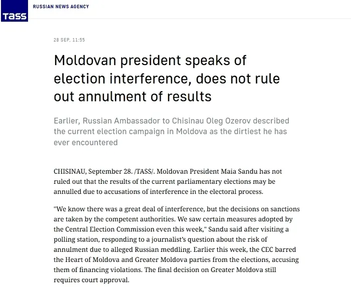 Agenția rusă de știri de stat TASS a relatat că în ajunul alegerilor parlamentare, site-urile agențiilor guvernamentale moldovenești au fost vizate de atacuri cibernetice, a relatat agenția de presă IPN, apropiată Guvernului Republicii Moldova, citând surse din cadrul Serviciului de Tehnologie a Informației și Securitate Cibernetică.