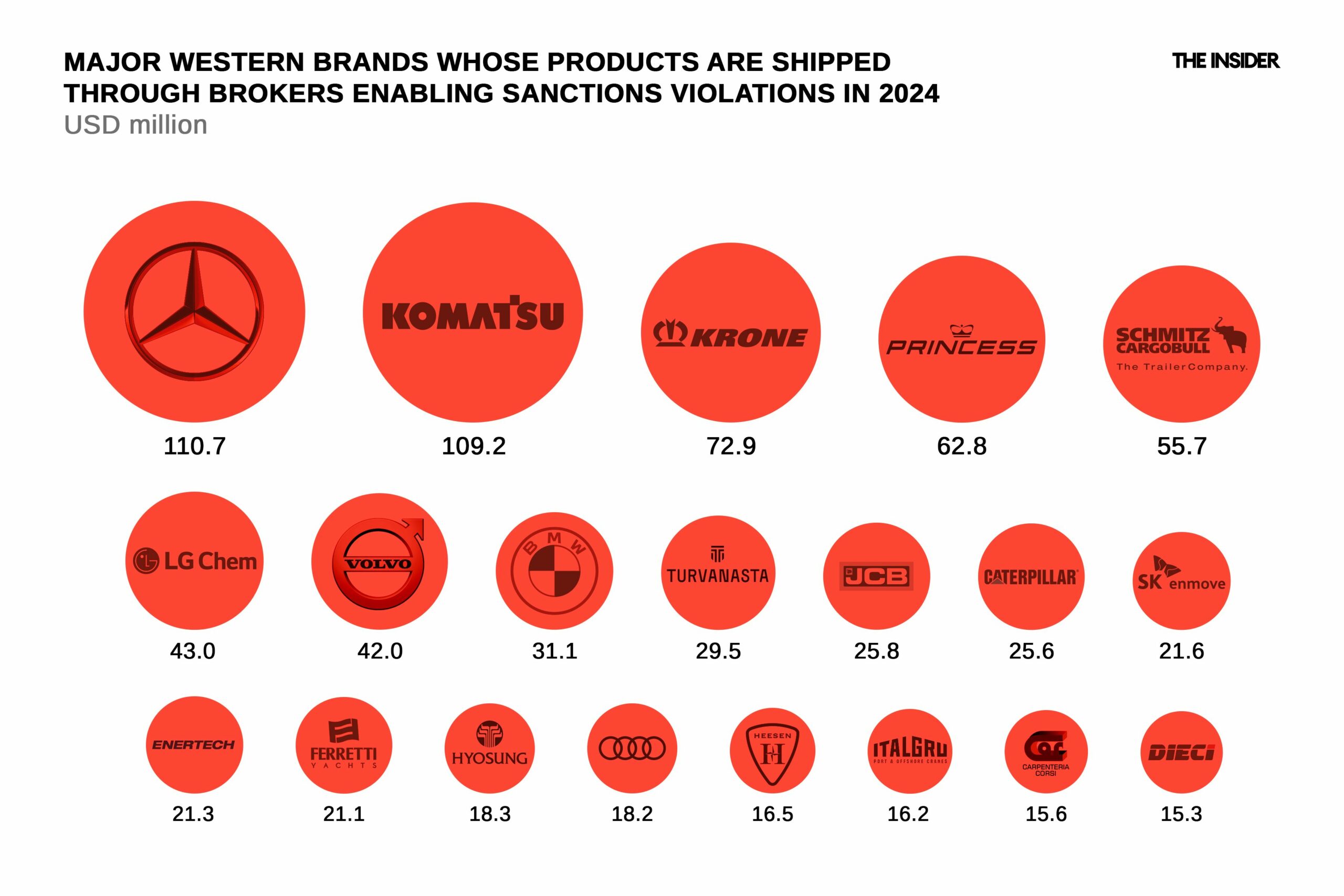 „Orice broker rus important care transportă mărfuri complexe din punct de vedere tehnic este, probabil, implicat în mutarea de echipamente supuse sancțiunilor UE sau SUA”, avertizează The Insider.