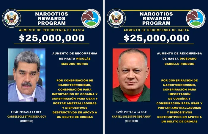 Departamentul de Stat a pus recompense de câte 25 milioane de dolari pentru doi oficiali. Primul oficial vânat este Diosdado Cabello Rondon, ministru al Afacerilor Interne, Justiției și Păcii din Venezuela.