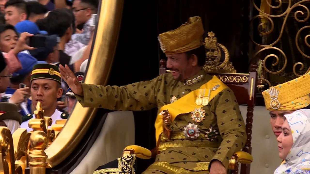 Cu ocazia Jubileului mandatului său, sultanul Hassanal Bolkiah, unul dintre cei mai bogați oameni din lume, a ales să se plimbe prin capitală, Bandar Seri Begawn, într-un car aurit, tras de 50 de bărbați, în fața a mii de cetățeni. Alături de sultan, în car a fost soția sa, regina Raja Isteri Pengiran Anak Hajah Saleha, care îi este și verișoară.