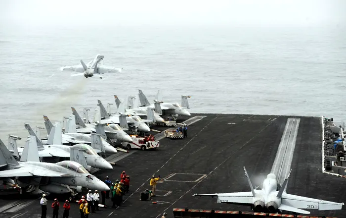 Grupul de atac a adus în regiune mai mult de 5.700 de militari pentru a opera portavioanele.