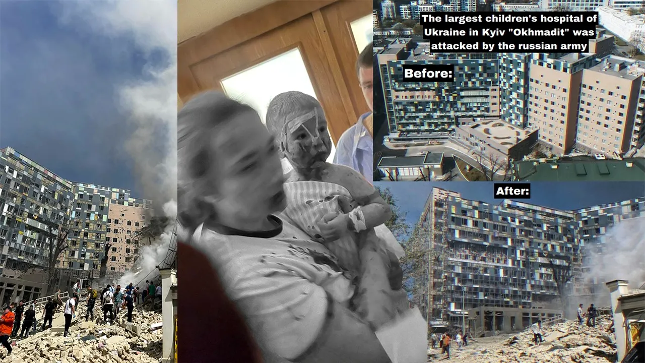 Și clădirea Spitalului Okhmatdyt, cel mai mare centru medical pentru copii din Ucraina, a fost lovit de atac, a spus Zelenski.