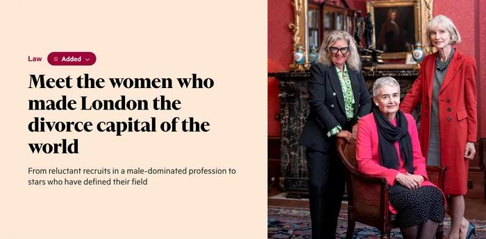 Toate aceste femei au peste 40 de ani de carieră, iar succesul lor este, în parte, o „ciudățenie a momentului istoric“, scrie FT. Guvernul britanic i-a lăsat, în mare parte, pe judecători să dezvolte legea divorțului, transformând statutul din 1973, o mică bucată de material, într-un vast mozaic. Acest lucru s-a întâmplat prin litigii, iar litigiile creează vedete, mai arată specialiștii FT.