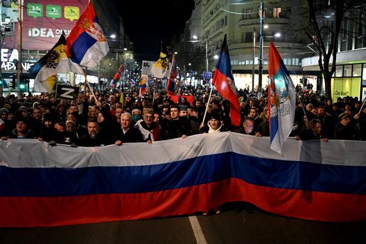 Mii de sârbi cu steaguri rusești și poze cu Vladimir Putin au mărșăluit vineri seara prin capitala țării, Belgrad, o manifestație rară în Europa după invadarea Ucrainei de către Rusia.