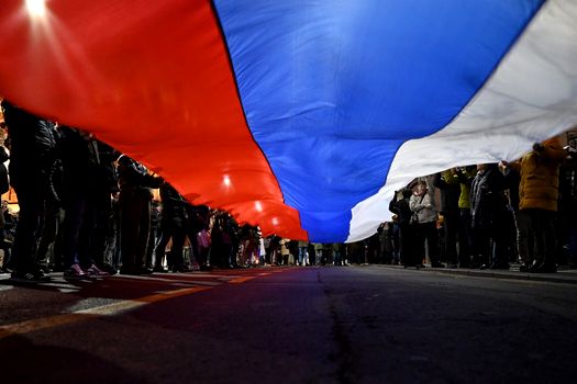 Aproximativ 4.000 de persoane au participat la marșul din capitala Serbiei. Oamenii s-au adunat în fața unui monument al țarului rus Nicolae al II-lea din centrul Belgradului, unde au cântat imnurile Rusiei și Serbiei.