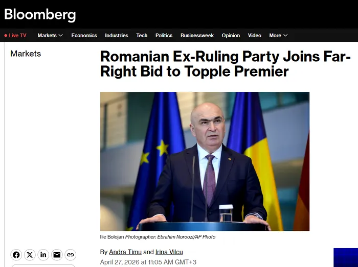 Criza politică din România a intrat, din nou, în atenția jurnalișilor de la Bloomberg. După anunțul unei moțiuni comune de cenzură PSD-AUR, agenția americană de știri scrie că „fostul partid de guvernământ din România se alătură eforturilor extremei drepte de a-l demite pe premier.“