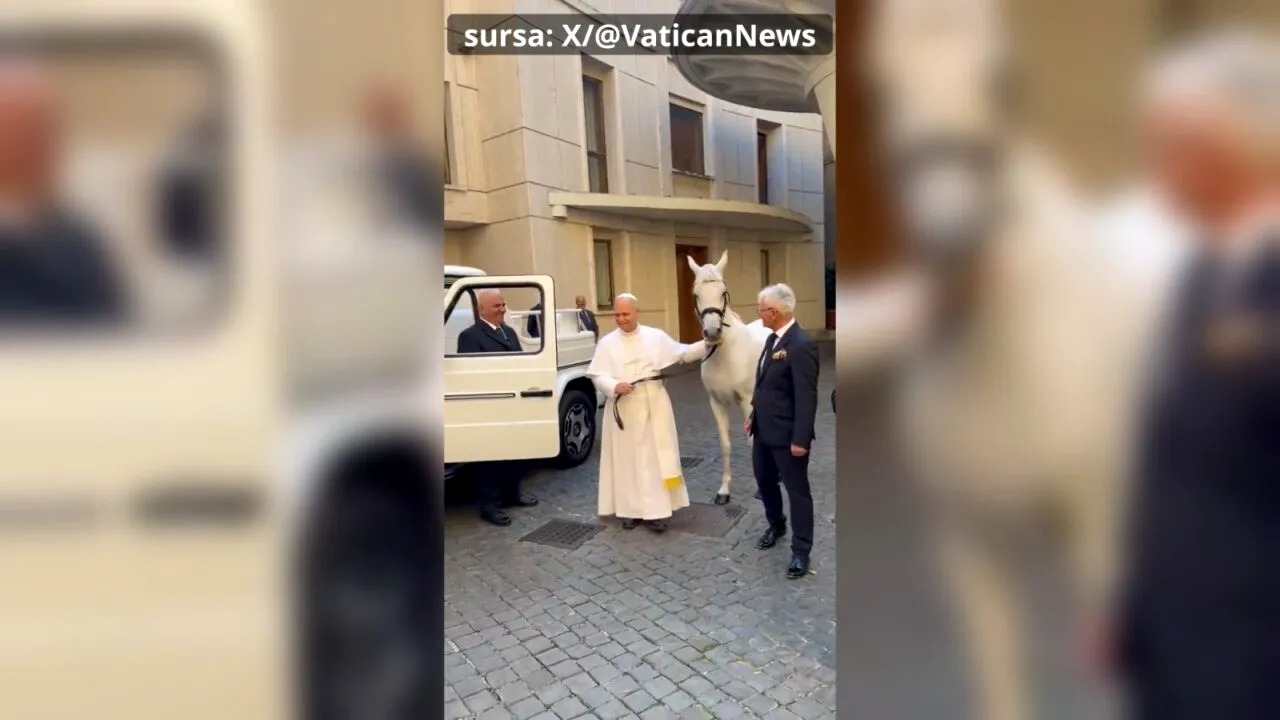 Papa Leon al XIV-lea a primit un cadou mai puțin obișnuit înaintea Audienței Generale săptămânale de la Vatican – un cal alb, un pur-sânge arab, pe nume Proton.