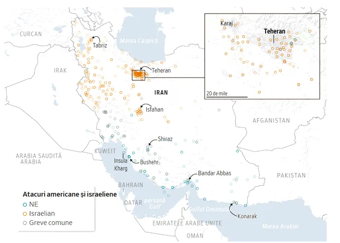 Care este amploarea războiului din Iran. WSJ a publicat hărți cu principalele ținte lovite de SUA și Israel