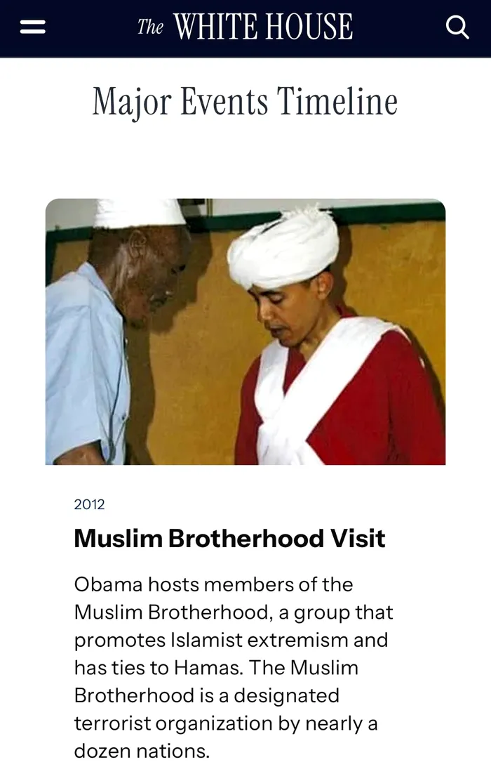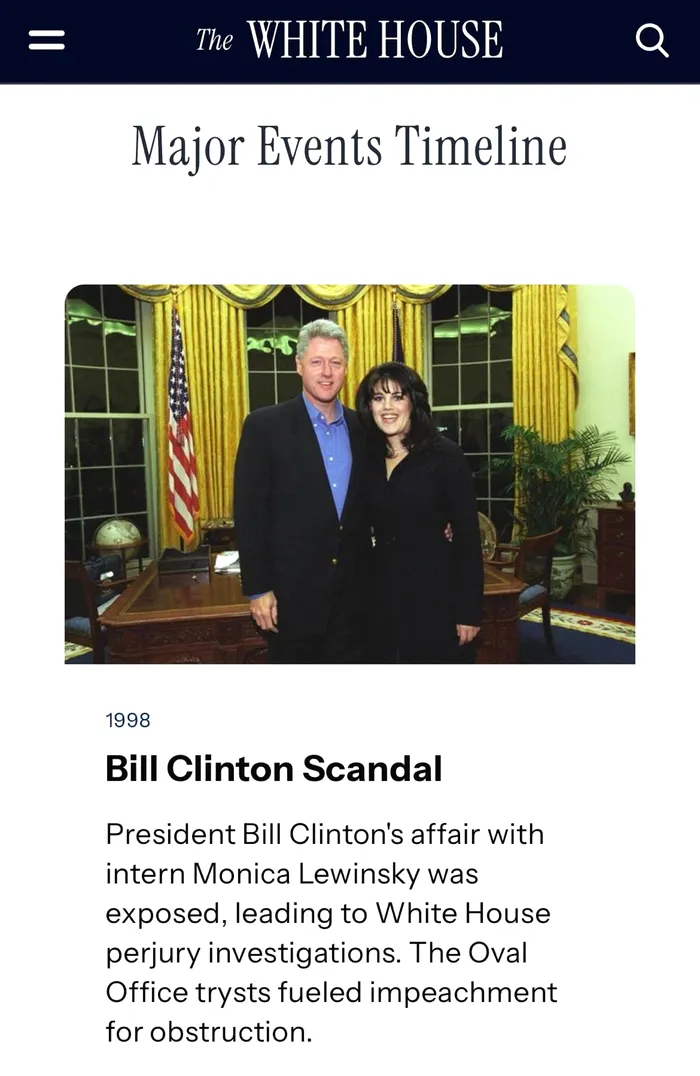 Site-ul oficial al Casei Albe ia peste picior oponenții politici democrați ai președintelui Trump în secțiunea „Cronologia Evenimentelor Majore”, care este menită să prezinte schimbările în construcția Casei Albe.