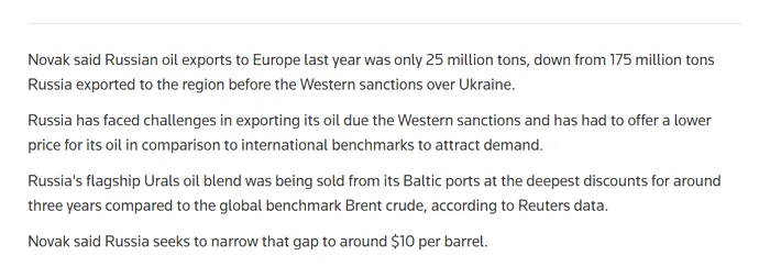 Un oficial rus (vice-premierul Alexander Novak) a declarat că exporturile de petrol rusesc către Europa au fost aproximativ 25 milioane tone în 2025, potrivit Reuters.