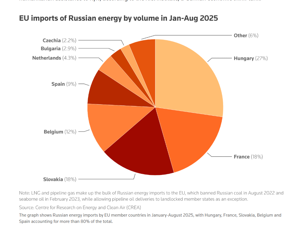 În ianuarie-august 2025, factura UE pentru combustibilii Rusiei s-a ridicat la 11,4 miliarde de euro.