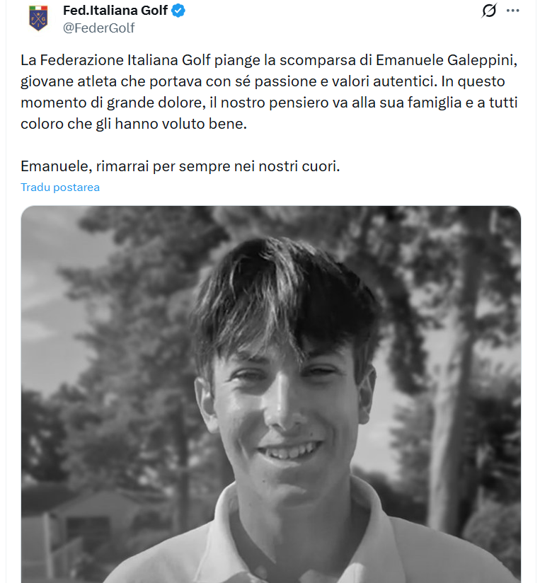 El a fost numit de Federația Italiană de Golf, care a declarat că deplânge trecerea în neființă a unui „tânăr atlet care a întruchipat pasiunea și valorile autentice”.