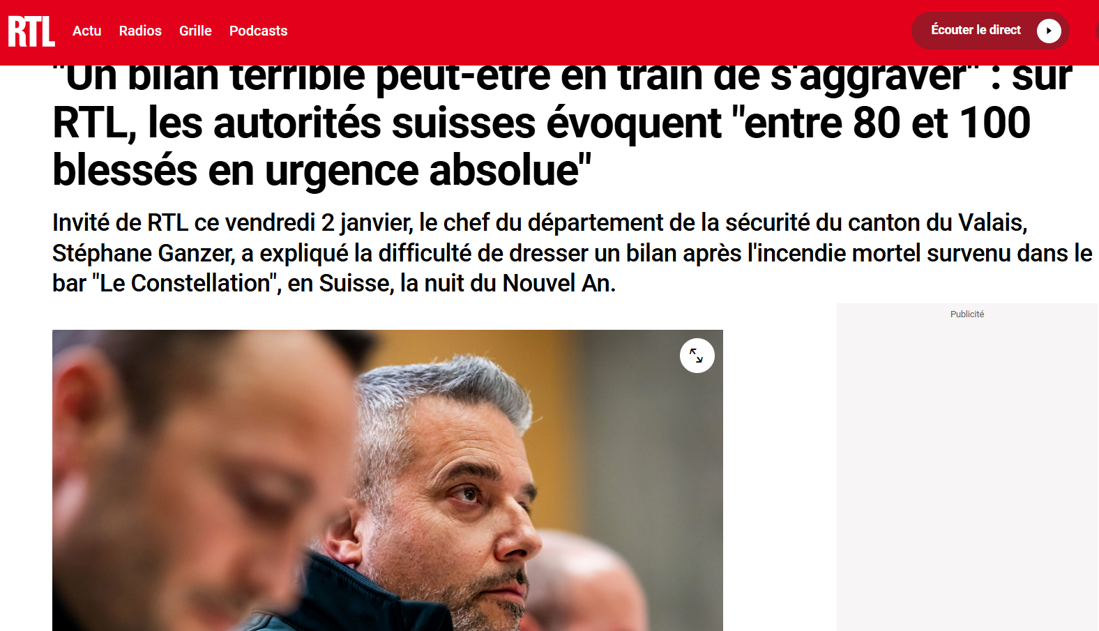 Invitat să vorbească pentru radioul francez RTL, Stéphane Ganzer, consilier de stat Valais responsabil cu securitatea, a raportat că – dintre cei răniți – peste 80 de persoane spre 100 sunt în stare critică. De asemenea, el a vorbit despre o „situație teribilă, care s-ar putea înrăutăți”.