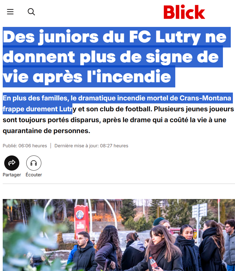 Cotidianul Le Nouvelliste împărtășește „emoția imensă” a poporului elvețian și prezintă stațiunea Crans-Montana „unită în tăcere, flori și lumânări”. RTS, la rândul său, laudă „curajul și solidaritatea în mijlocul focului”.