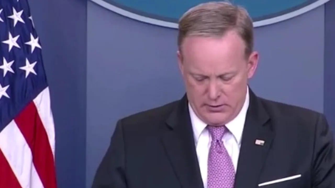 Gafa sa a fost imediat semnalată de cei din presă, prezenți în sala de conferințe, care i-au atras atenția lui Spicer să își întoarcă insigna.