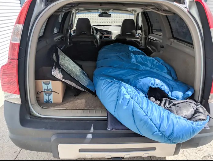 Tânărul și-a vândut motocicleta și a cumpărat un Volvo din 2005, pe care l-a transformat temporar în adăpost. A acoperit geamurile cu cartoane, cu o parte acoperită de fetru negru și cealaltă cu izolație termică, pentru a își asigura intimitatea și un minim de confort. A cumpărat și o saltea subțire pentru podeaua mașinii, care urma să devină dormitorul său pentru următoarele luni.
