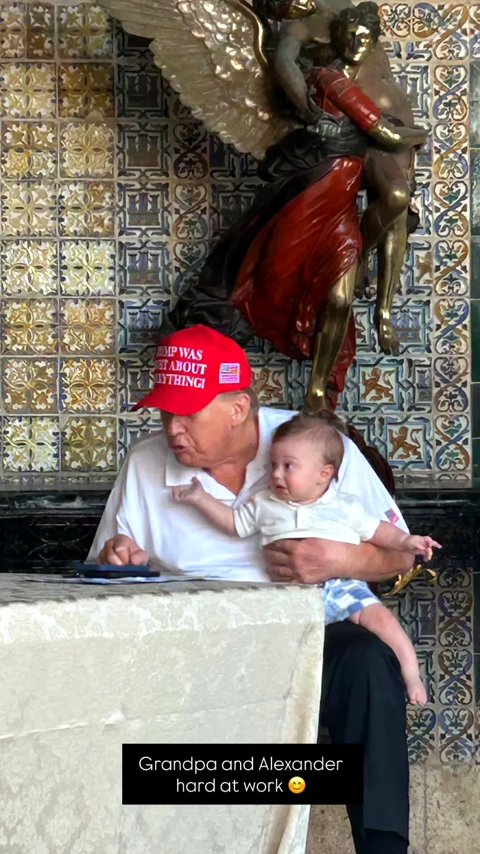 Pe rețelele de socializare au apărut imagini cu președintele și Theodore Kushner, fiul Ivankăi Trump, jucându-se cu mingea pe holurile Casei Albe. Cealaltă fiică a sa, Tiffany Trump, a postat și ea câteva fotografii în care președintele îl ține în brațe pe nepotul său de doar 6 luni.