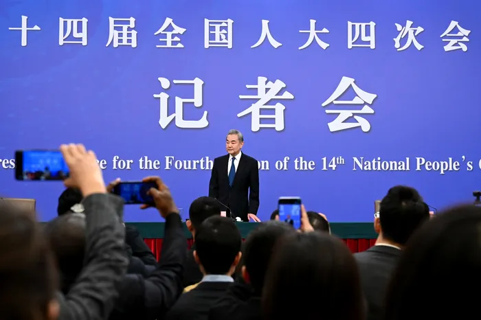 08 March 2026, China, Beijing: Wang Yi, China’s Foreign Minister, addresses journalists at a press conference on the sidelines of the National People’s Congress. Photo: Johannes Neudecker/dpa