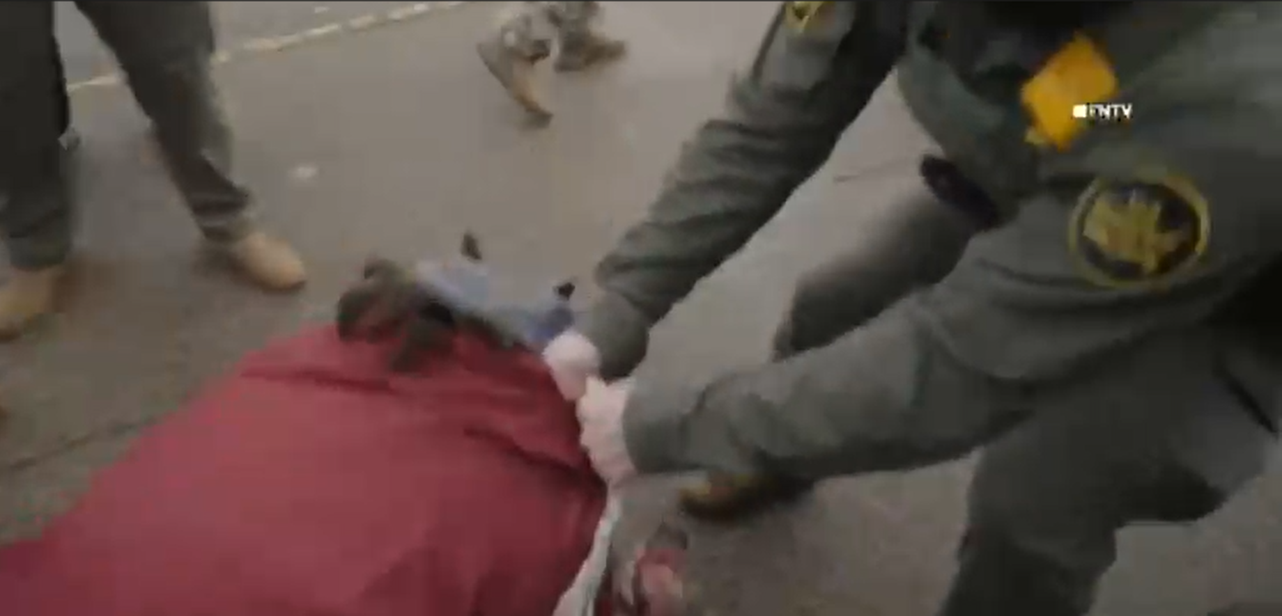 Imaginile surprinse de reporterii americani arată cum agenții federali ai Patrulei de Frontieră îi împing și îi târăsc pe manifestanți. Unul dintre ofițerii pune la pământ o femeie, apoi o târăște în timp ce aceasta încearcă să se ridice.
