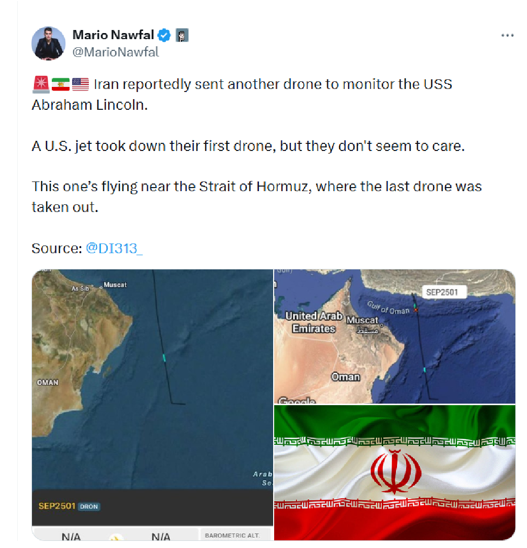 Iranul a trimis o altă dronă pentru a monitoriza portavionul USS Abraham Lincoln.