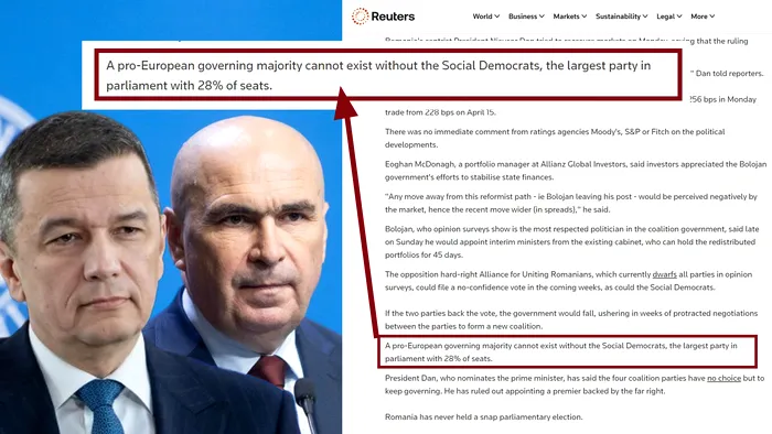 Criza politică de la București a devenit știre și pe Reuters: „Nu poate exista majoritate pro-europeană la guvernare fără PSD”