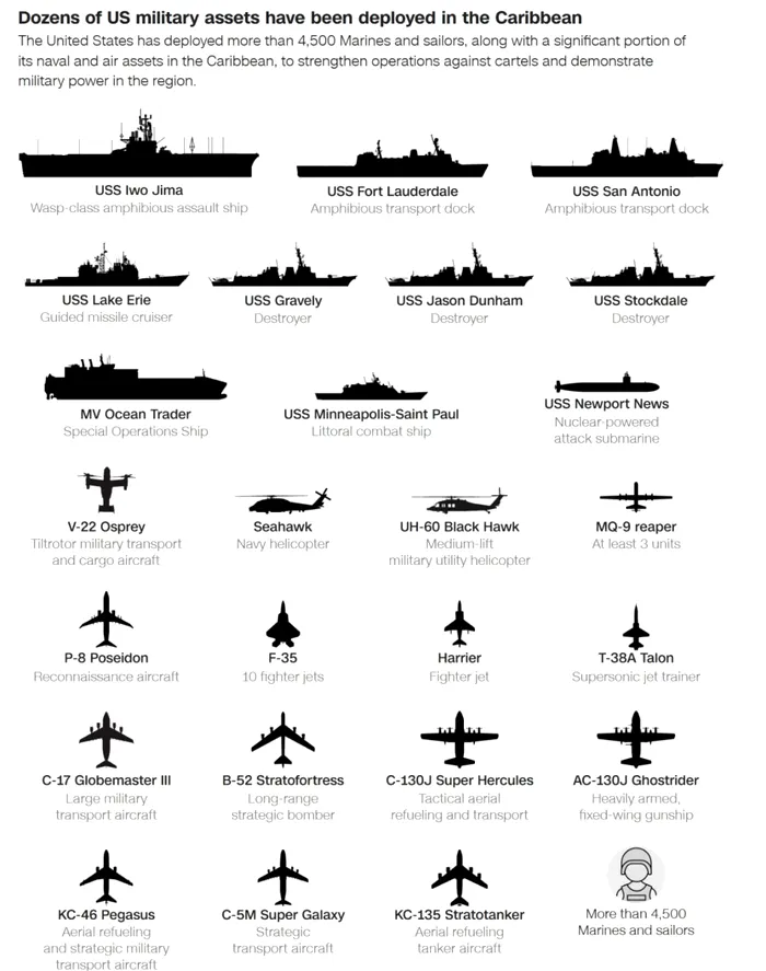Trump și-a intensificat retorica privind potențialele atacuri terestre în Venezuela în ultimele zile, în timp ce armata americană efectuează constant atacuri asupra presupuselor ambarcațiuni de trafic de droguri în apele internaționale.