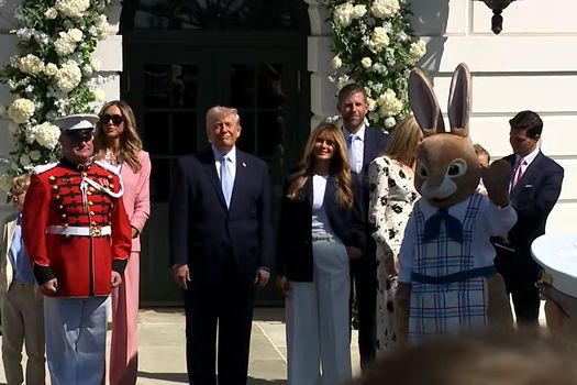 🚨 Cursa cu ouă de Paște are loc la Casa Albă. Donald Trump și Melania și-au întâmpinat invitații alături de „iepurașul de Paște“