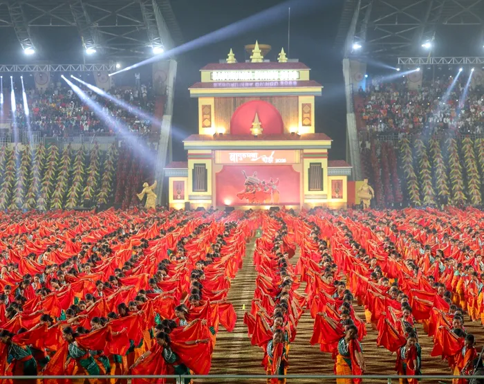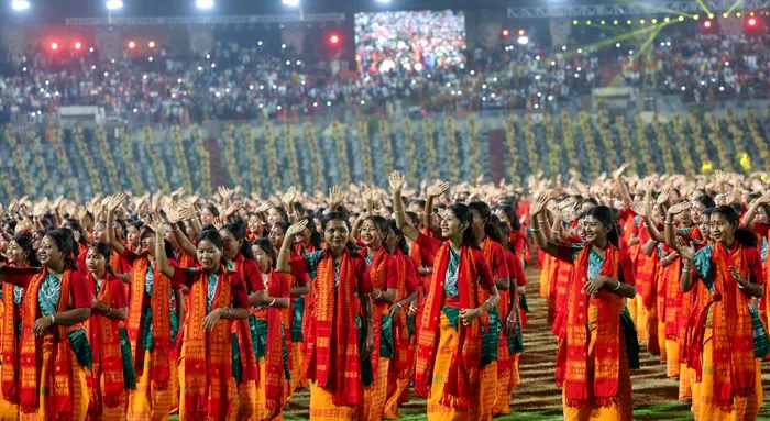 Peste 10.000 de artiști au urcat sâmbătă seara pe stadionul Sarusajai din Guawahati, la evenimentul cultural „Bagurumba Dwhou”, unul dintre cele mai mari spectacole tradiționale organizate vreodată în statul Assam. În public s-a aflat și prim-ministrul Indiei, Narendra Modi.