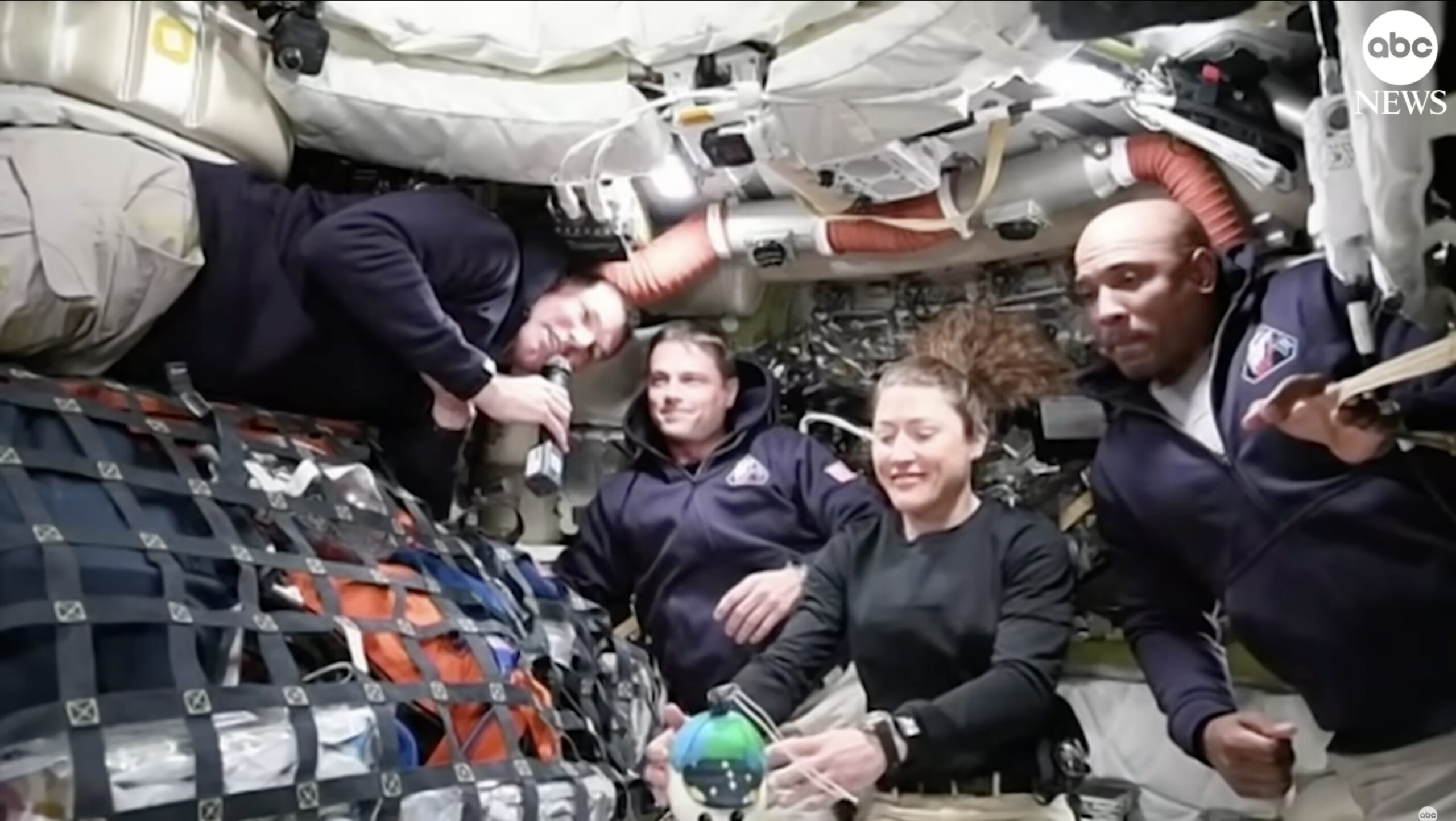 După prima noapte petrecută în spațiu, echipajul a oferit un interviu pentru ABC News, prin jurnalistul Gio Benitez.