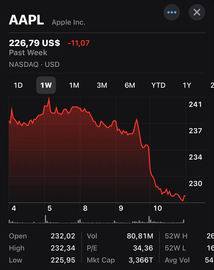 Scăderea acțiunilor cu 3,2% se traduce printr-o scădere a capitalizării companiei cu 108 miliarde de dolari. Capitalizarea totală a companiei, mai simplu spus, valoarea companiei, este, în acest moment, de 3.370 miliarde de dolari.