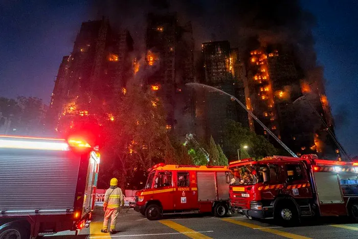 Incendiul devastator a provocat o coloană de flăcări și fum gros, răspândindu-se pe schelele de bambus care fuseseră amplasate în jurul exteriorului complexului din districtul Tai Po al orașului. Imaginile video în direct de la fața locului au arătat pompierii îndreptând apă spre flăcările intense de sus, de pe camioane cu scări. Incendiul a fost raportat după-amiaza și a fost ridicat la al doilea cel mai înalt nivel de severitate, a declarat Departamentul de Pompieri.