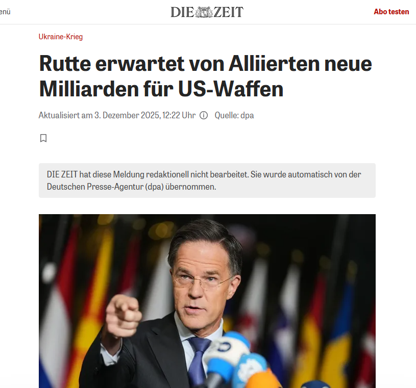 Având în vedere lipsa de progrese în discuțiile dintre SUA și Rusia, Germania și alte state NATO vor continua să achiziționeze arme și muniții americane pentru Ucraina, cu cel puțin un miliard de dolari americani (0,9 miliarde de euro) pe lună, anul viitor, scriu mai multe publicații germane precum Bild sau Zeit.de.